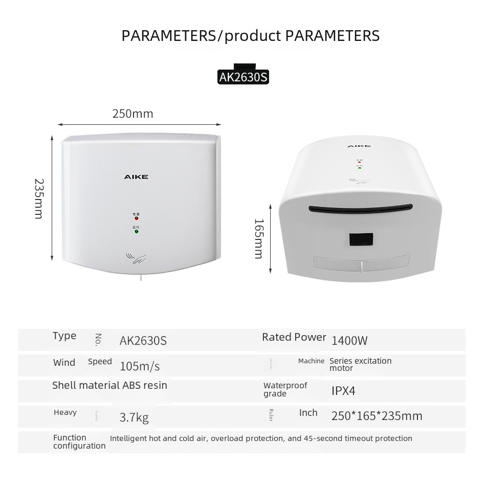 | Rated frequency : 50,Home delivery,ABS resin,Wall-mounted,250*165*235mm,3.7kg,Fully automatic,National Joint Insurance,[AK2630S White] High Speed 1400W/Intelligent Cold and Hot Wind,[AK2630S Silver] High Speed 1400W/Intelligent Cold and Hot Wind,[AK2630TS White] High Speed 1400W/Intelligent Cold and Hot Wind,[AK2630TS Silver] High Speed 1400W/Intelligent Cold and Hot Wind,[AK2632 White] High Speed 1400W/Wind Speed Upgrade,[AK2632 Silver] High Speed 1400W/Wind Speed Upgrade,[Set] hand dryer AK2630S White + soap dispenser AK1220,[Set] hand dryer AK2630TS White + soap dispenser AK1220,[Set] hand dryer AK2632 White + soap dispenser AK1220,No,Hand dryer,Ike,AK2630S,Hand dryer,20-40,220,1400 |