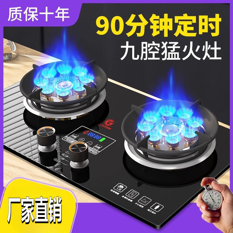 Color:[Hot sale] Double Nine-chamber stove electric display timing-extinguishing child lock-double stainless steel-no Specifications:Natural gas |