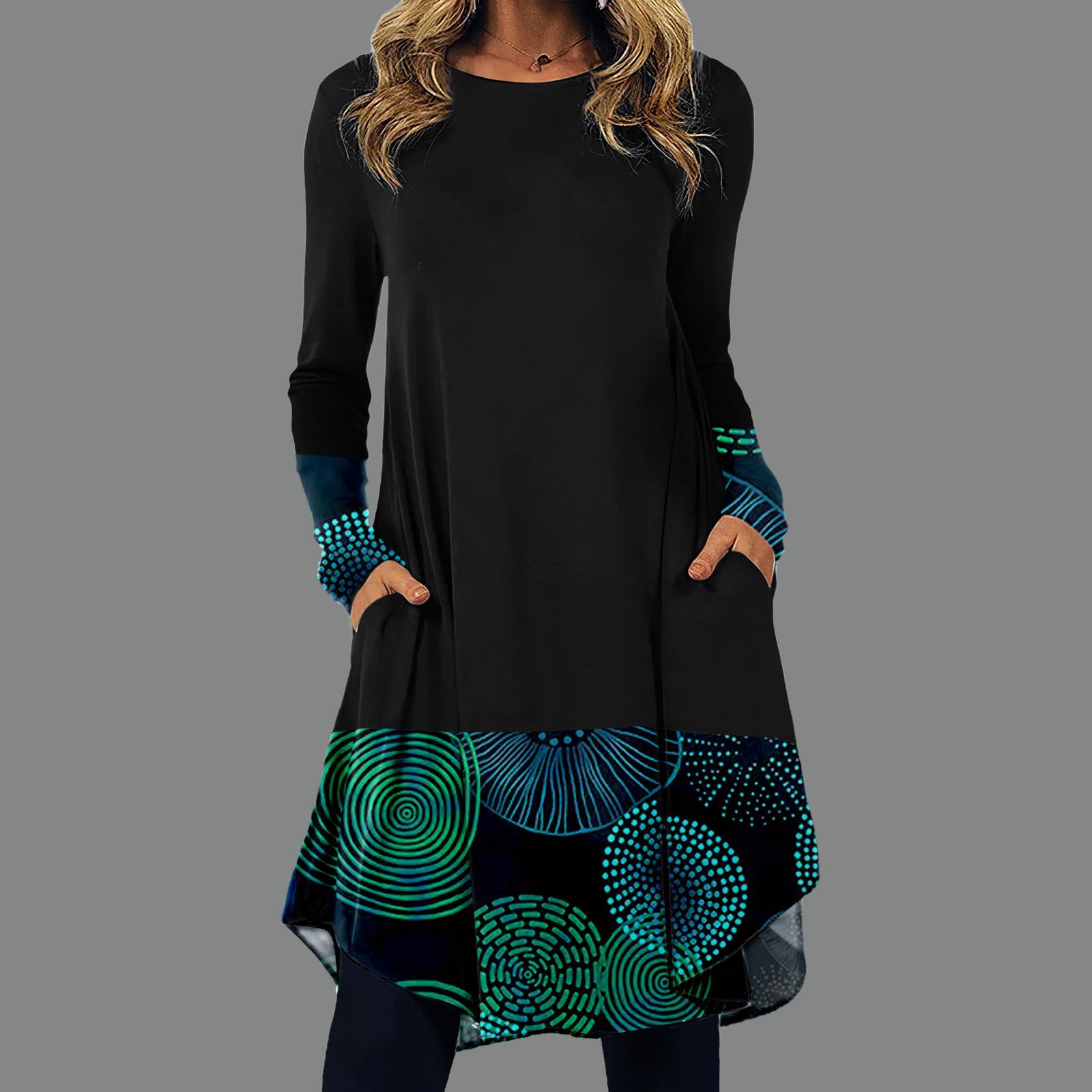 Independent station wish Amazon ethnic style printed Street European and American fashion pullover long sleeve pocket large size dress