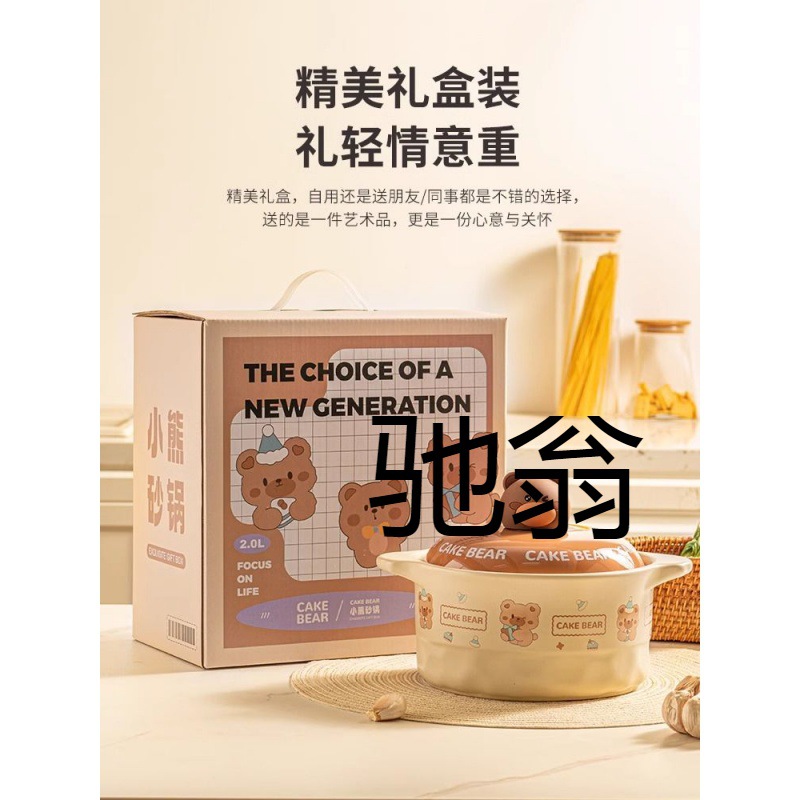 | Capacity : 2.1-3L,1,clay,No,Cartoon,Chi Weng,Uncoated pan,Other,Composite multi-layer bottom,Gas stove applicable,None,1.2L bear casserole [recommended 1-2]],2L bear casserole [recommended for 2-4 people]],2.8L bear casserole [recommended for 4-6 people]],Damaged package [cold and hot alternate without cracking]],Complimentary gift box,Imported spodumene reduction ingredients itself delicious,High temperature resistance |