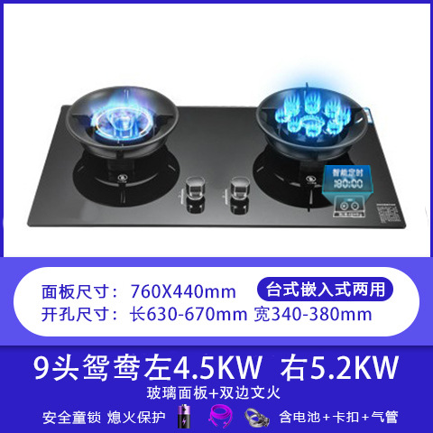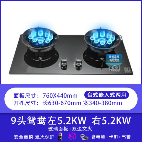 Color:Glass double 9-head fierce fire + energy gathering + timing (flip cover) Specifications:Natural gas |